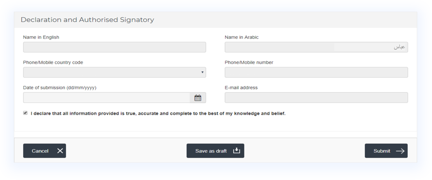 In this final section, you are required to vouch for the authenticity of the data that you have provided in the all the fields above, using the check box. All of your personal information will be auto-populated below the declaration.