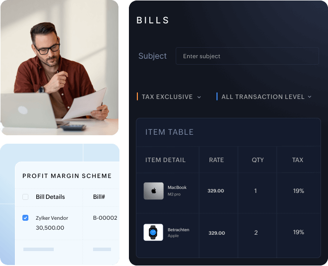 Zoho Books automatically calculates VAT on profit margins, saving your time on manual entries.
