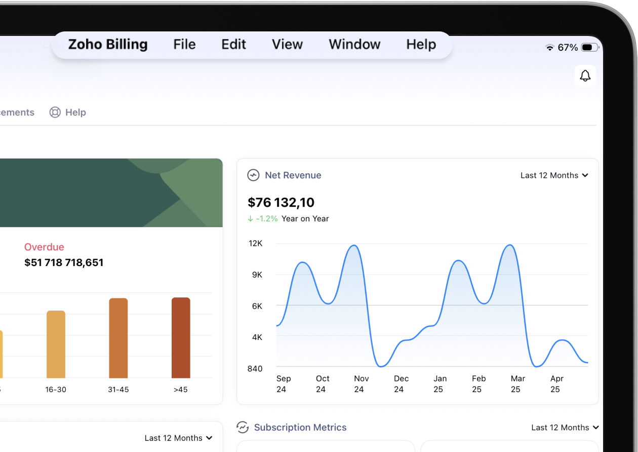 Zoho Billing embraces liquid glass for a clearer interface, fluid navigation, and a user experience that feels built around you.