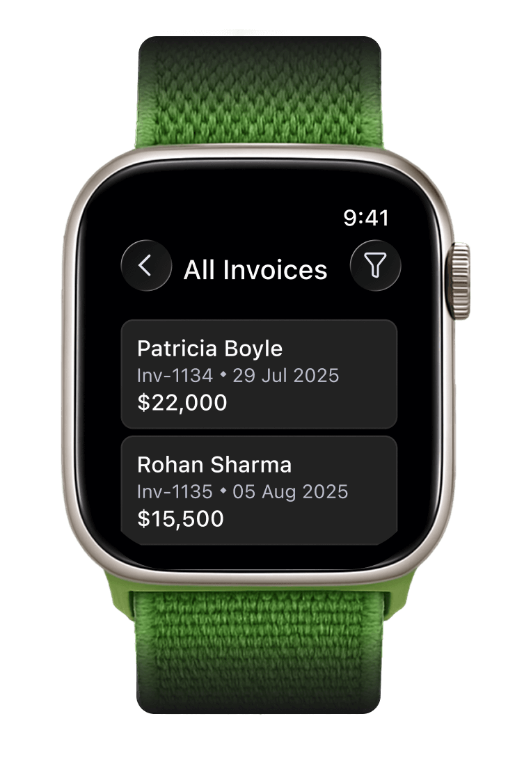 Type or use interactive snippets in spotlight to instantly access invoices, customer info, and key billing details, right from your iPhone.