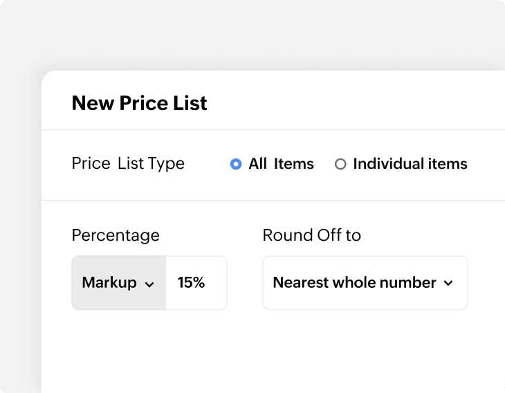 Configure marked up and marked down prices of goods and services to contextually implement them using Zoho Billing's price lists.