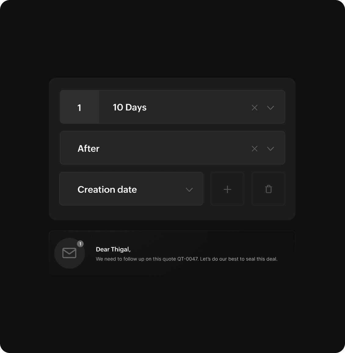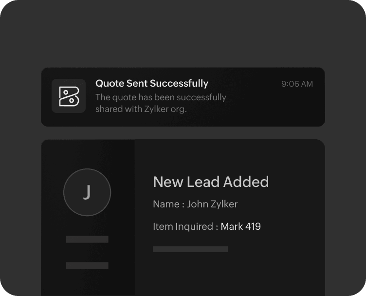 Automate emails for anything from following important leads and chasing payments to notifying quote expiry and payment dues. Keep your customers and employees informed to set the right expectations and foster better relationships.