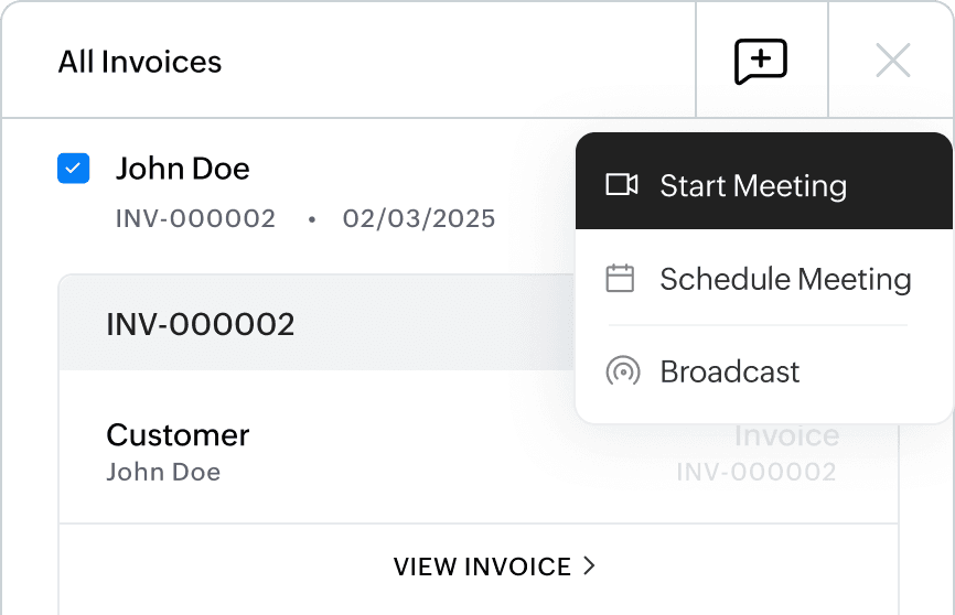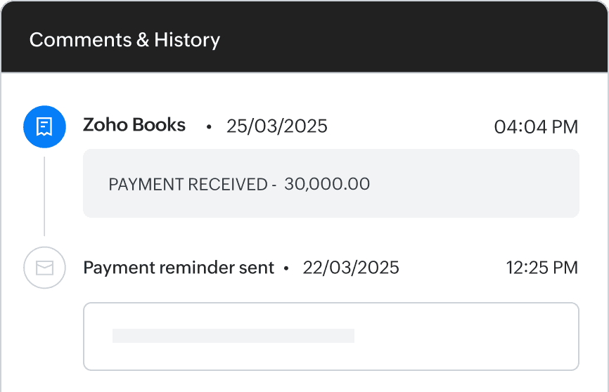 From dropping comments on transactions and documents to live chat, audio, or video call/conferences; quickly converge on decisions with contextual communication channels on Zoho Books.