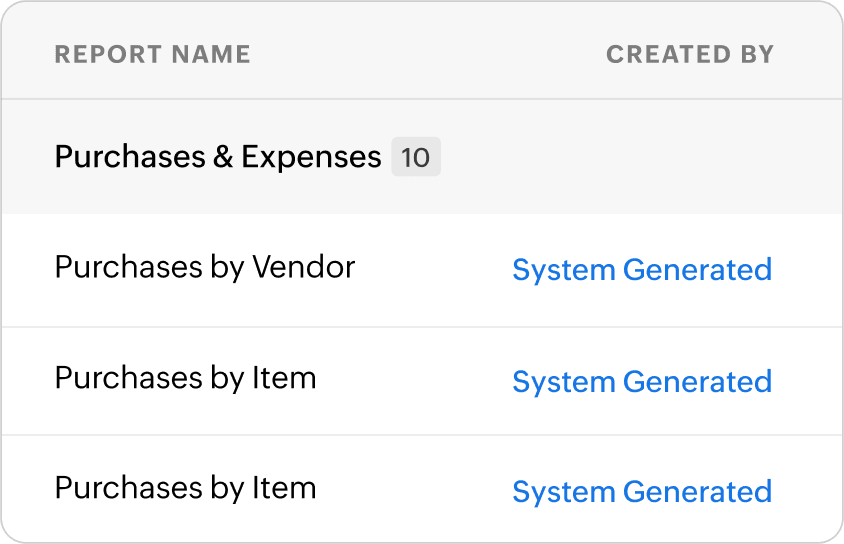 Create purchase orders effortlessly. Zoho Books maintains a complete sale history, and lets you convert purchases into bills with a single click.