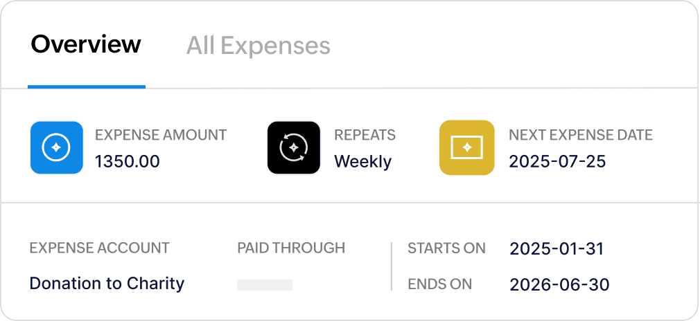 Generate recurring profiles for expenses that regularly occur and automatically record them in Zoho Books.