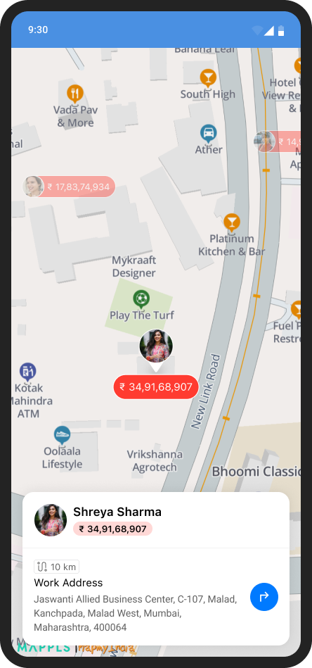 Need to view customer details instantly? Just tap on the pin.