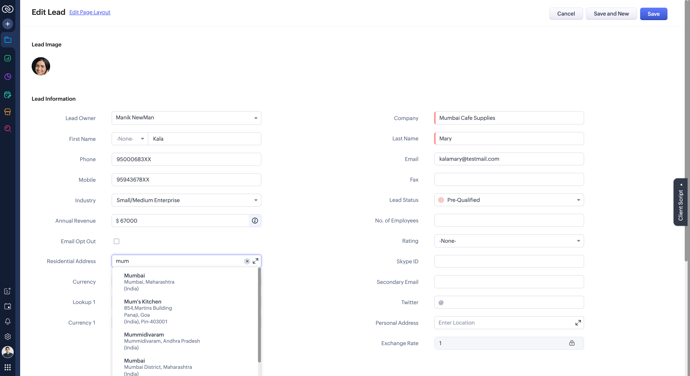 For his field technician, Ravi, this means no more relying on vague directions like, "near the parlor, opposite the big tea shop." Zoho CRM's live map view shows the exact location.