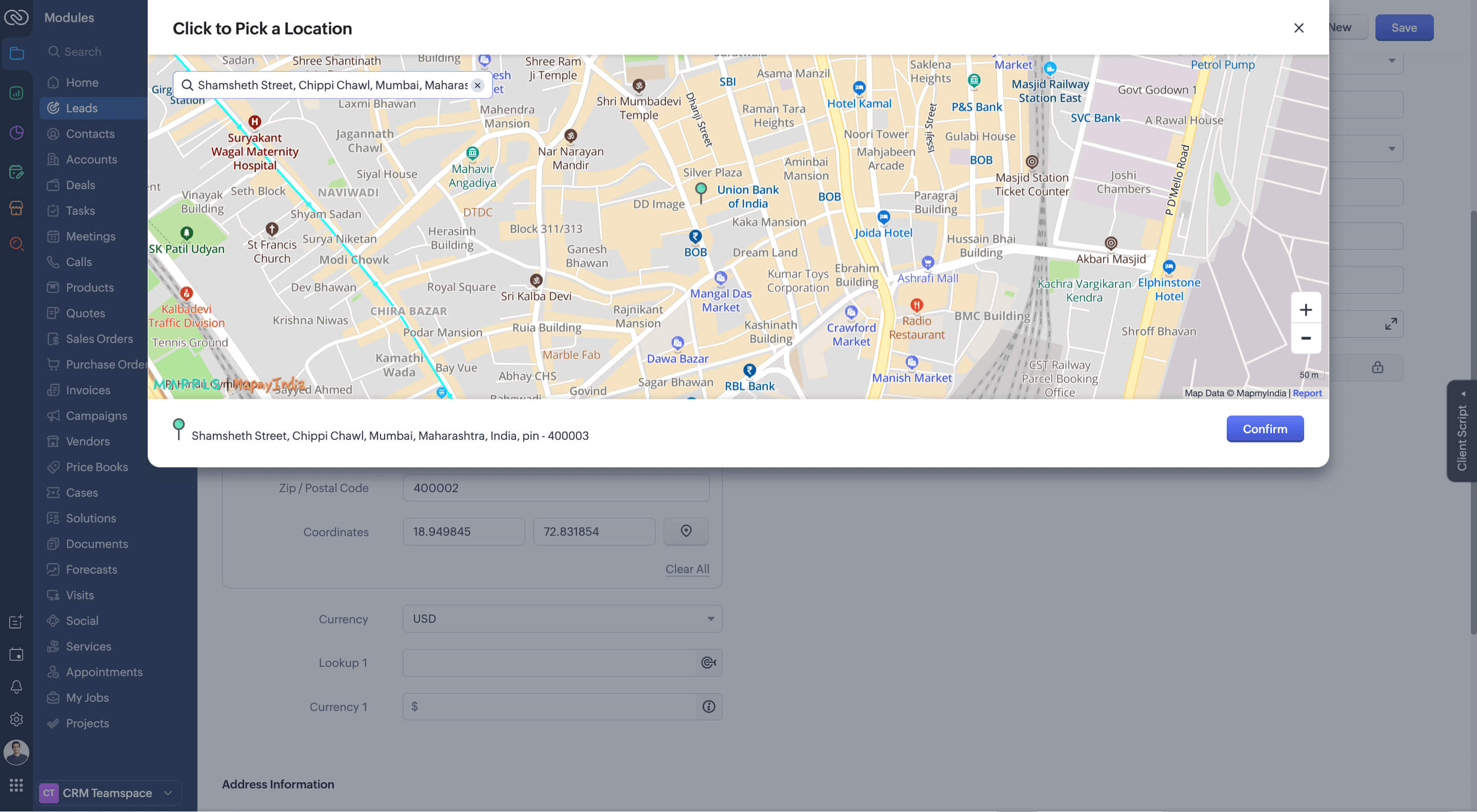 Akash has recently decided to try something new in Zoho CRM. He has enabled the smarter address entry update. The next time a customer calls, instead of typing out the full address and hoping it's right, he enters the first few letters of the address in the CRM. Instantly, real-time suggestions appear. With one tap, the street, city, postal code, and even coordinates are filled in automatically.