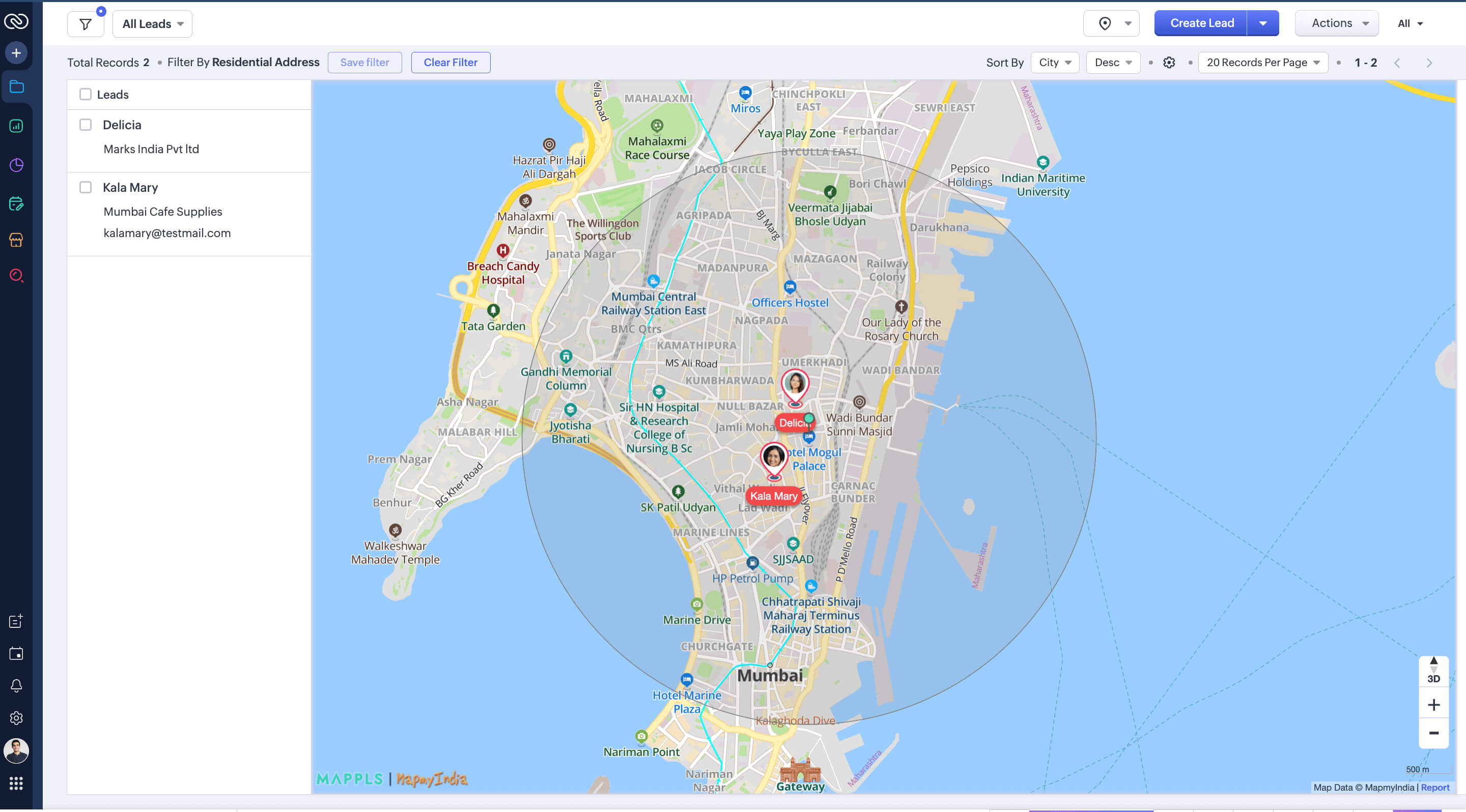 Here's where it gets even better. Zoho CRM now shows how far Ravi is from his next customer. If a call comes in from nearby while he's in the area, he can fit it in instantly—no backtracking, no missed opportunities. When a customer from Colaba calls at 2 PM, the CRM shows he is just 1.8 km away from Ravi's current job. He finishes the filter replacement he's on, walks two streets over, and has her purifier fixed before 3 PM.