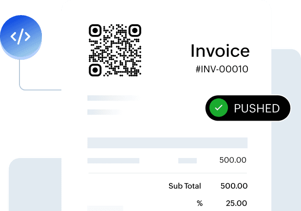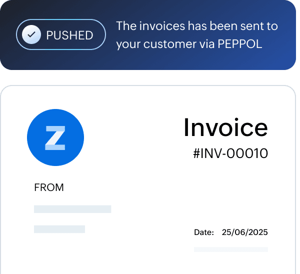 Send business-to-business invoices directly through InvoiceNow, without ever leaving Zoho Books. Create your invoice, transmit it in the correct e‑invoicing format, and you're done. Just hit 'Push.' Receiving bills from your suppliers through InvoiceNow is just as effortless.