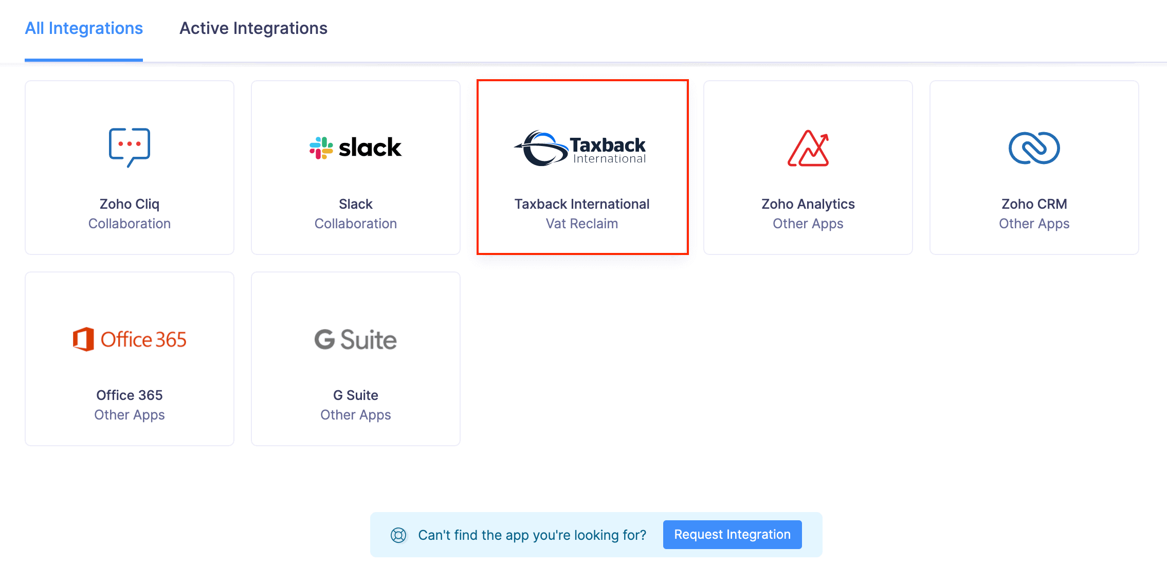 Prerequisite: A Zoho Expense organisation and a Taxback International account.