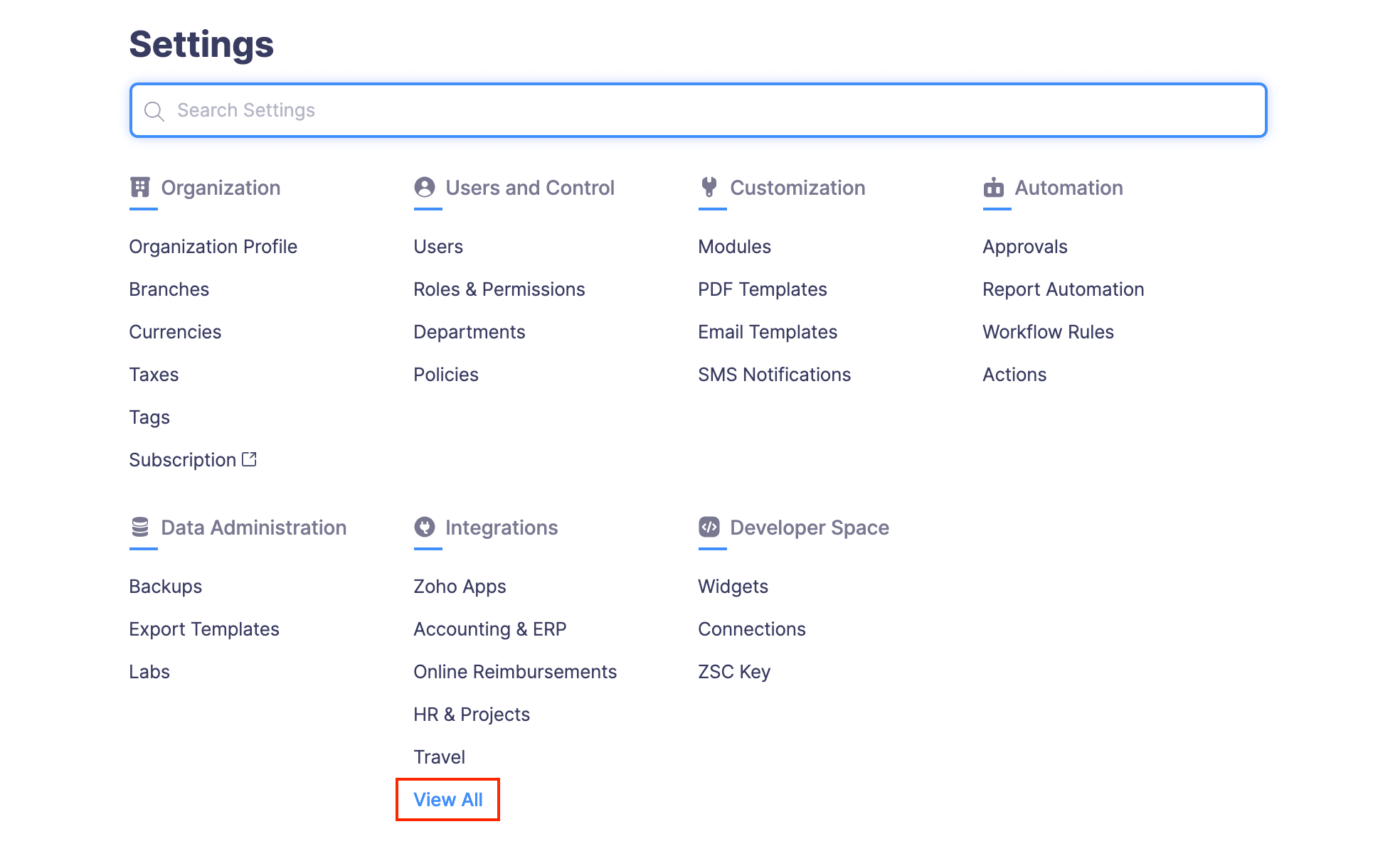 Go to Settings on the left sidebar. - Click View All under Integrations.
