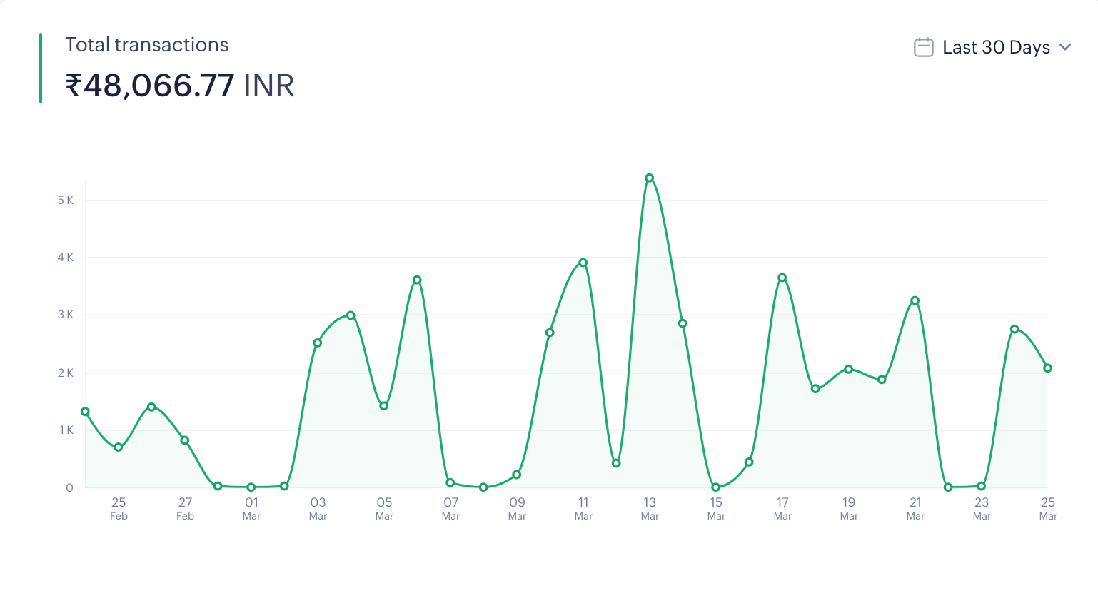 The Dashboard is your home page and gives you a bird’s eye view of all the payments and payouts being processed in your business and it is the first thing you’ll notice when you log in to Zoho Payments. It organises your data in an easily consumable way so you just quickly get the numbers you need.