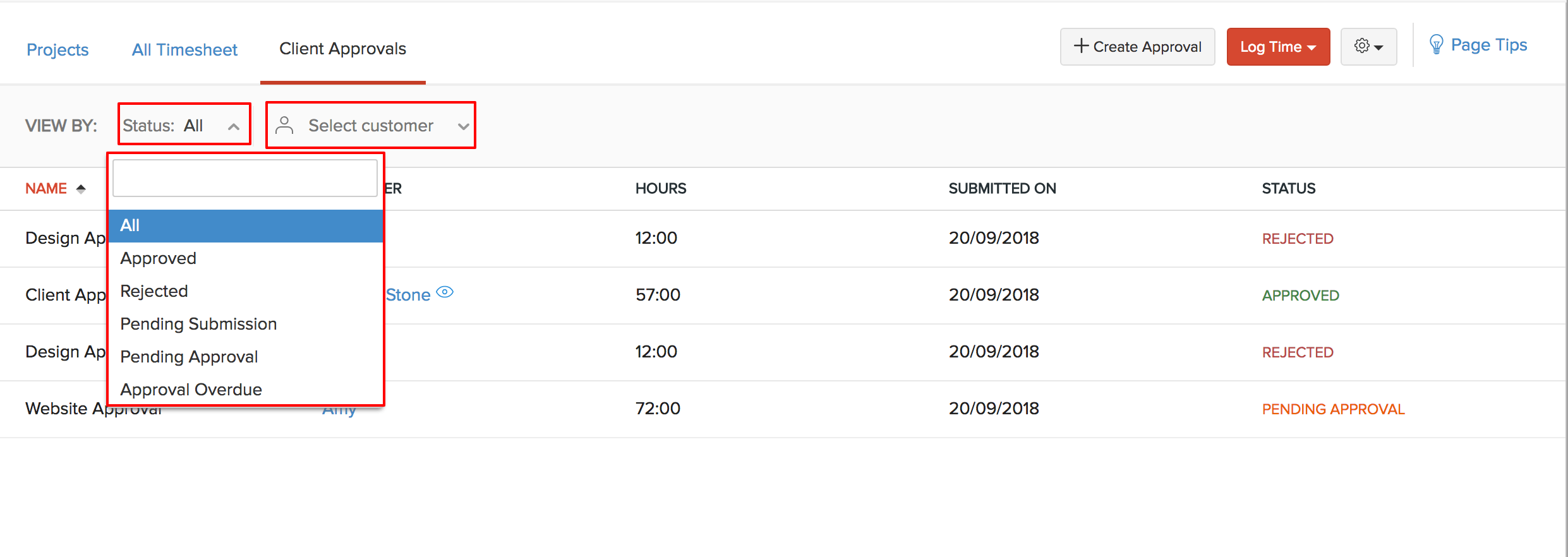 We have a set of filters based on which you can filter your client approvals and list them.