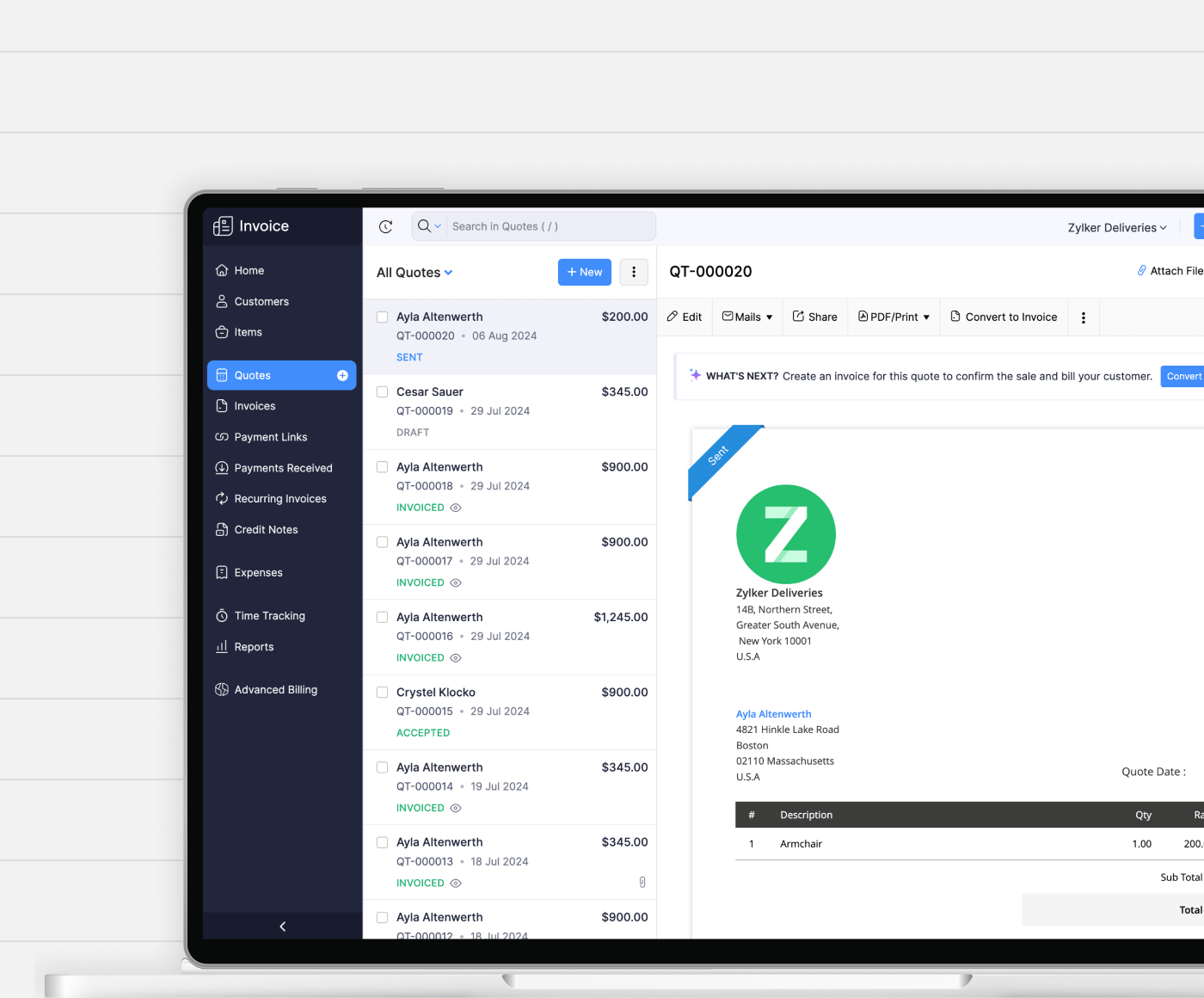 Zoho Invoice is available on both iOS and Android so you can easily invoice your customers while walking your dog or grabbing a hot cup of coffee.