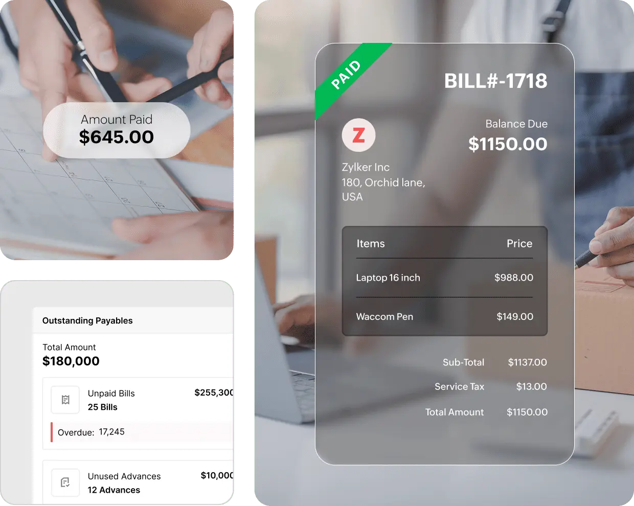 • Zoho Procurement automates the entire payments workflow by capturing invoices, extracting information via AI-powered OCR to create bills, matching bills with purchase orders and receives, and routing them through custom approval flows and notification workflows to enable accurate, on-time payments. Along with centralized supplier, sourcing, and purchase request modules, Zoho Procurement ensures a transparent and efficient payment process.