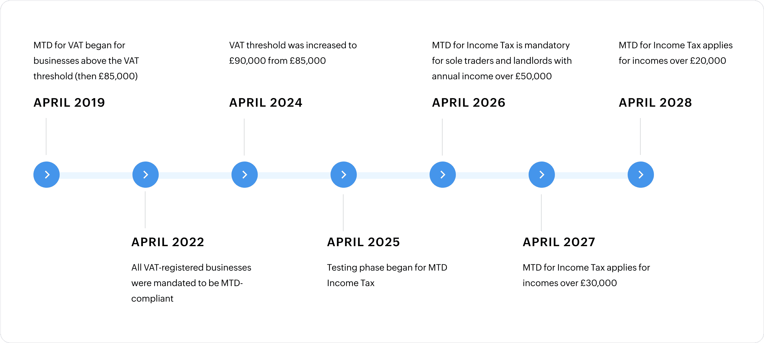 While MTD is already mandatory for all VAT-registered businesses since 2022, sole traders with annual income of £50,000 and above will have to be MTD-compliant from April 2026.