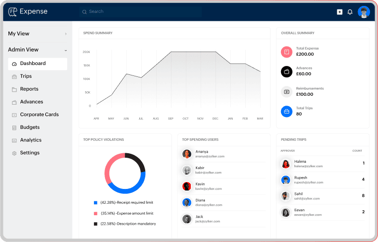 Zoho Expense centralises travel booking, expense reporting, approvals, reimbursements, VAT tracking, and compliance in one system, giving UK companies better visibility and control over business spend.