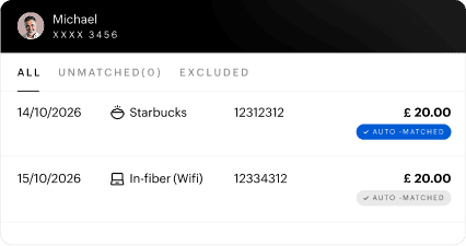 Manage corporate card spending with real-time feeds for Visa and Mastercard issued by any bank. Automatically match transactions with receipts to simplify reconciliation and maintain accurate, audit-ready digital records.