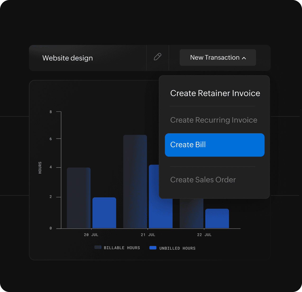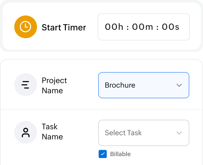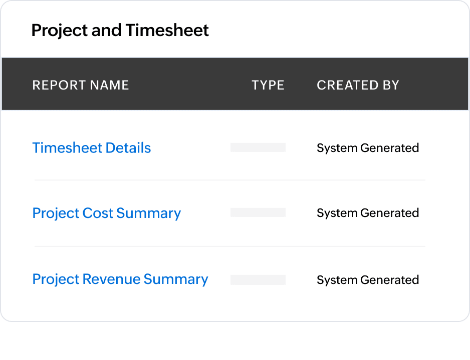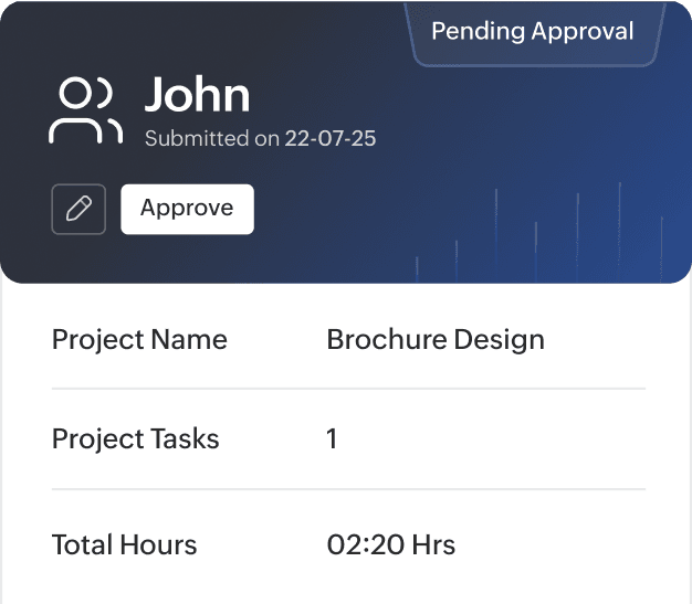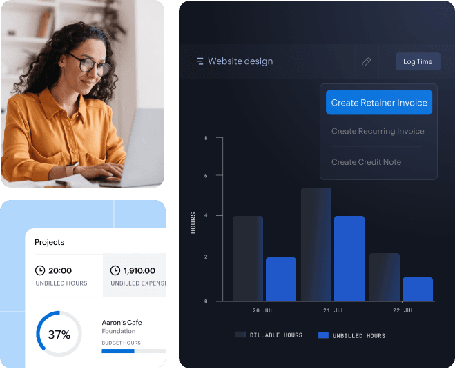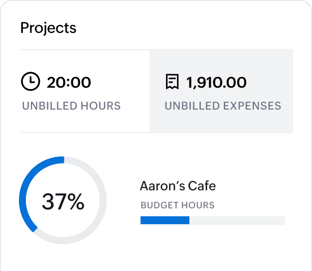 Monitor your projects in real time on your Zoho Books dashboard. This comes in handy when you don't have much time, but want to know where things are standing.