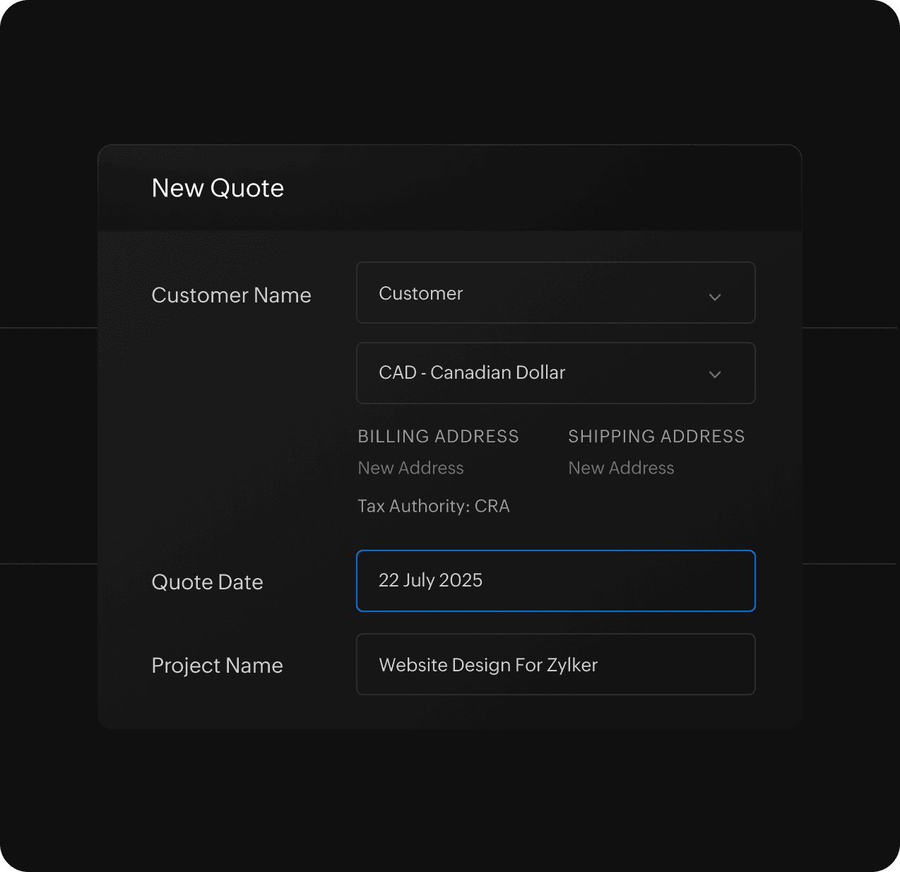 Send out a project estimate or quote to your client from the Projects module. You can start invoicing your client once they accept the quote.